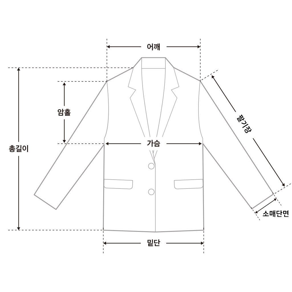 | 가슴단면 | 어깨단면 | 팔기장 | 암홀단면 | 소매단면 | 밑단단면 | 총길이 |