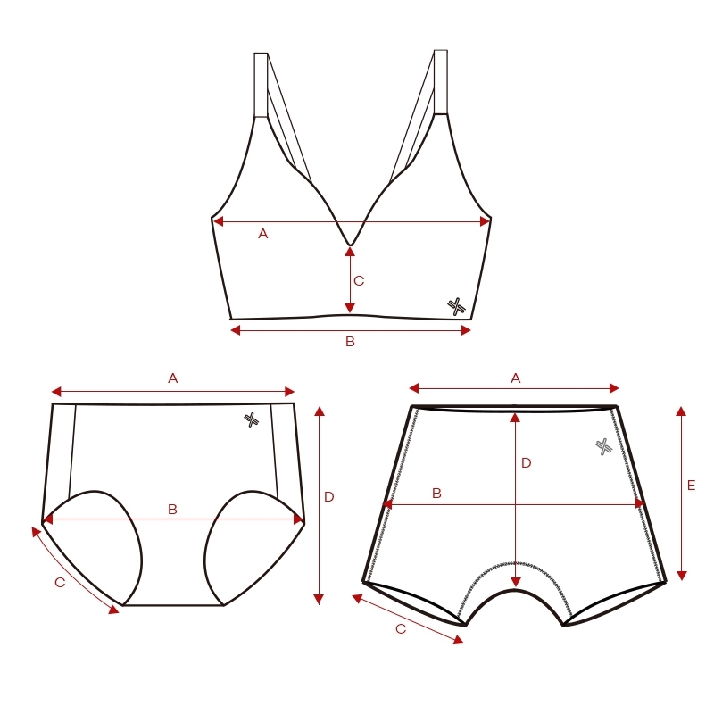 브라 - 나일론 62%, 폴리우레탄 38% / 쇼츠 - 나일론 62%, 폴리우레탄 38%, 안감 - 면 100% / 드로즈 - 나일론 79%, 폴리우레탄 21%, 안감 - 면 100%