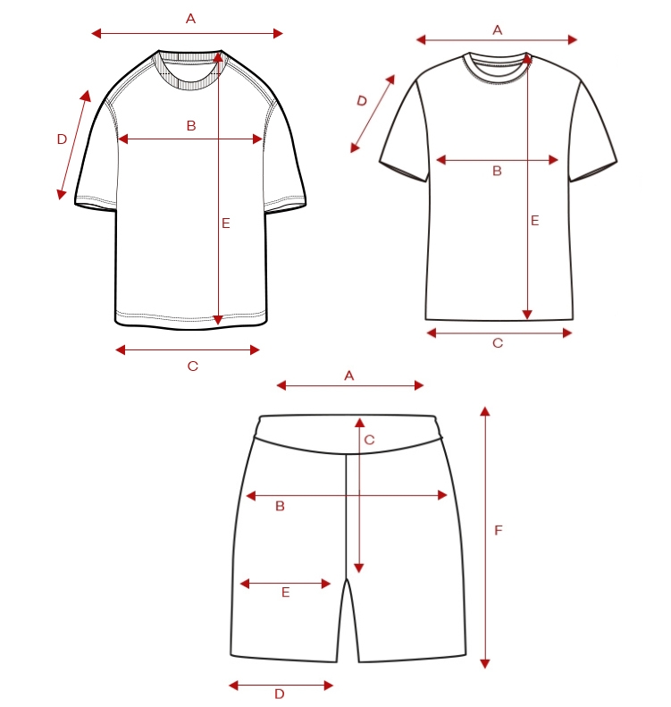 | SIZE | 하의 허리 A | 하의 엉덩이 B | 하의 밑위 C | 하의 밑단 D | 하의 허벅지 E | 하의 총장 F |