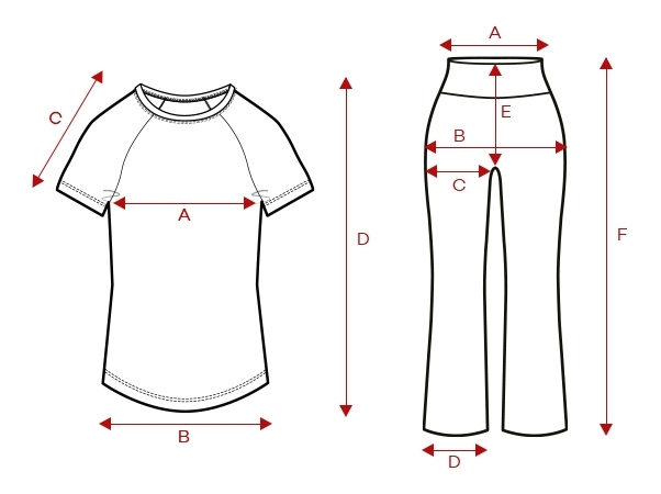 | SIZE | 하의 허리 A | 하의 엉덩이 B | 하의 허벅지 C | 하의 밑위 D | 하의 밑단 E | 하의 총장 F |